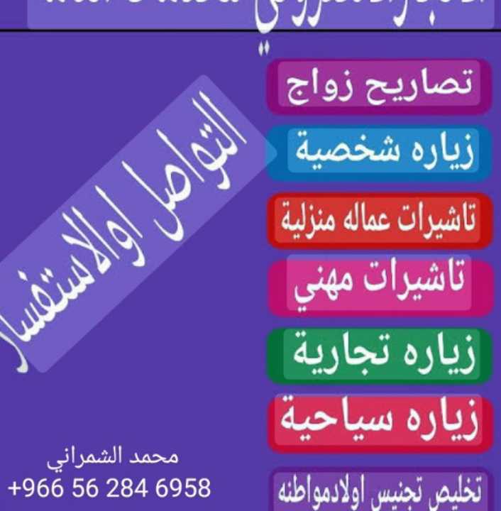 الدفع بعد الانجاز استقدام عائله تحويل زياره إقامه انجاز تمعملات تجنيس تصريح زواج من اجنبيه مقيمه استخراج تصريح زواج من اجنبيه خارج المملكة. 0562846958 استخراج…