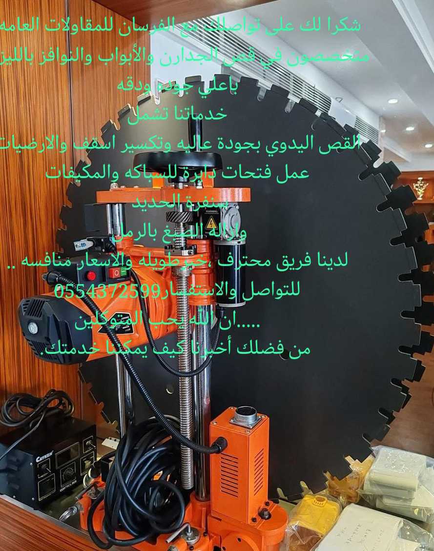 للقص جدران وابواب ونوافذ وتكسير ارضيات وعمل فتحات دايرة للسباكه ومكيفات